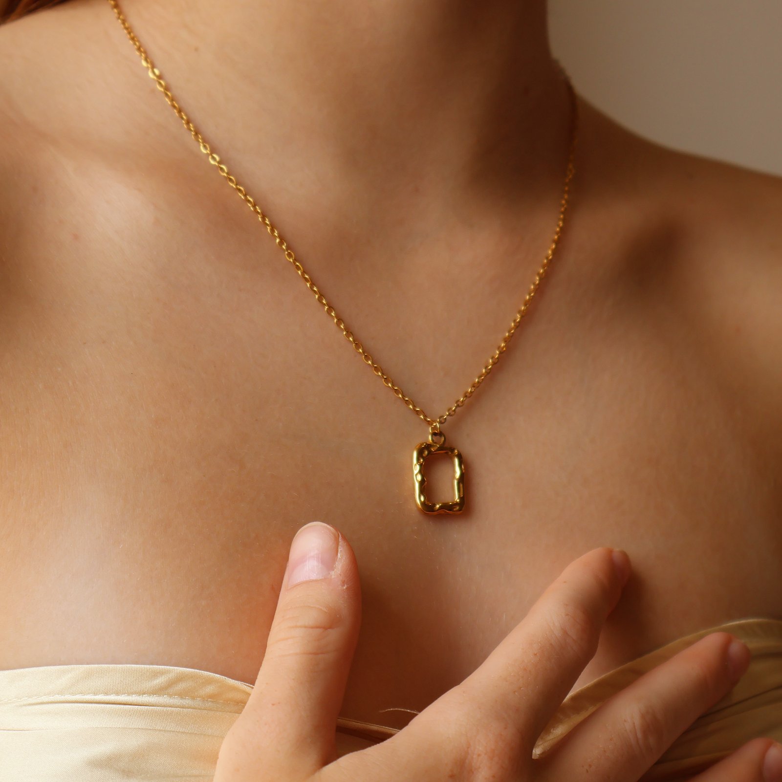 ✨ The Jamie Necklace combines modern design with timeless wearability. Featuring a rectangular open pendant with organic curves, it’s available in 18k gold, rose gold, and silver finishes. A versatile piece, Jamie is perfect for everyday wear, adding a touch of understated elegance whether styled solo or layered with other Illuka Blue favourites. ✨