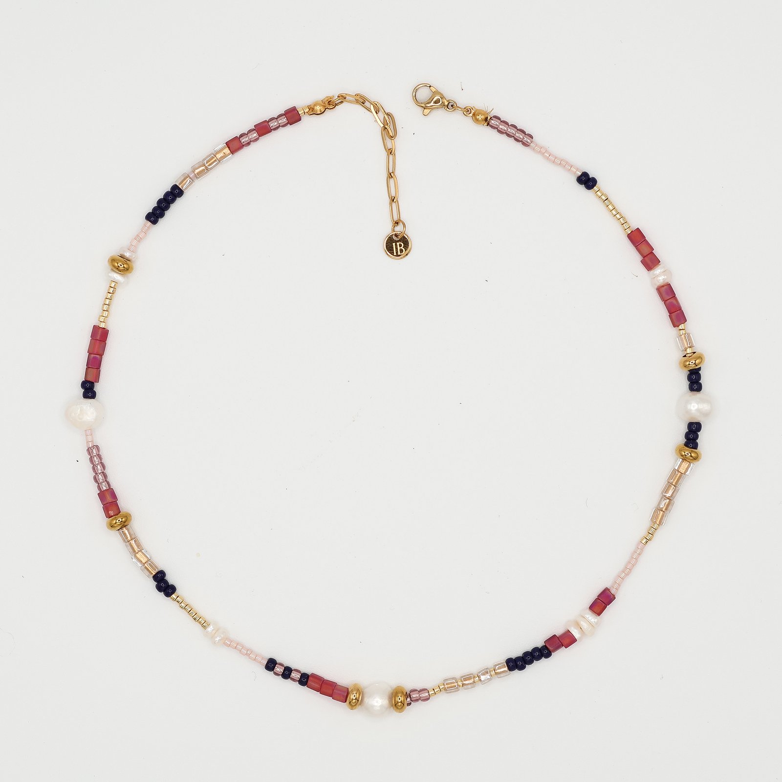 Length: 38.5cm + 5cm extender - please email sales@illukablue.com.au for a custom length • Premium Japanese Miyuki glass beads, Toho beads and Miyuki nylon thread • Natural freshwater baroque-shaped pearls • 18k gold coated using premium PVD technology • Stainless steel base • Natural freshwater pearls • Hypoallergenic • Please allow 2-3 business days to handcraft your new necklace • It's easy care with our jewellery: simply wipe with a soft cloth • Any questions? contact us at sales@illukablue.com.au