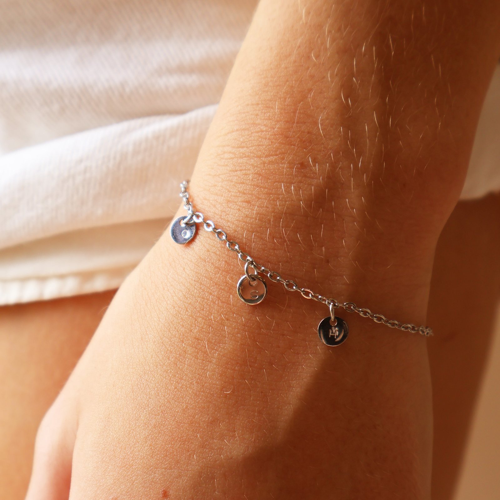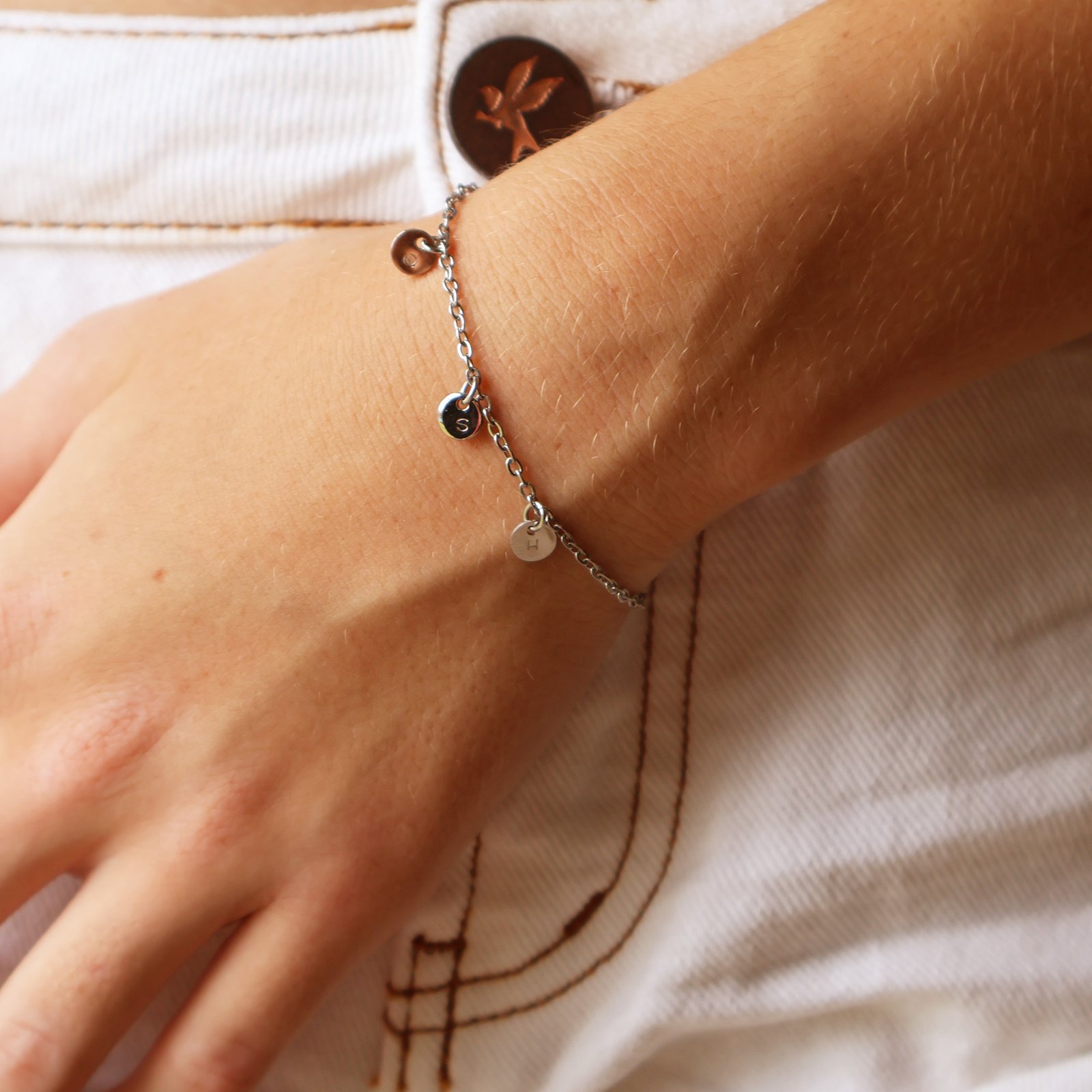 ✨ Designed to be worn every day and treasured forever, our Personalised Charm Bracelet in Silver lets you tell your story — one charm at a time. Featuring a delicate gold chain adorned with custom initial charms, this bracelet is effortlessly personal and endlessly wearable. Whether you’re celebrating loved ones, milestones, or simply your own name, each piece is made to feel uniquely yours. Choose from 1 charm, up to 9 charms! Charms are hand stamped in our Brisbane studio. ✨